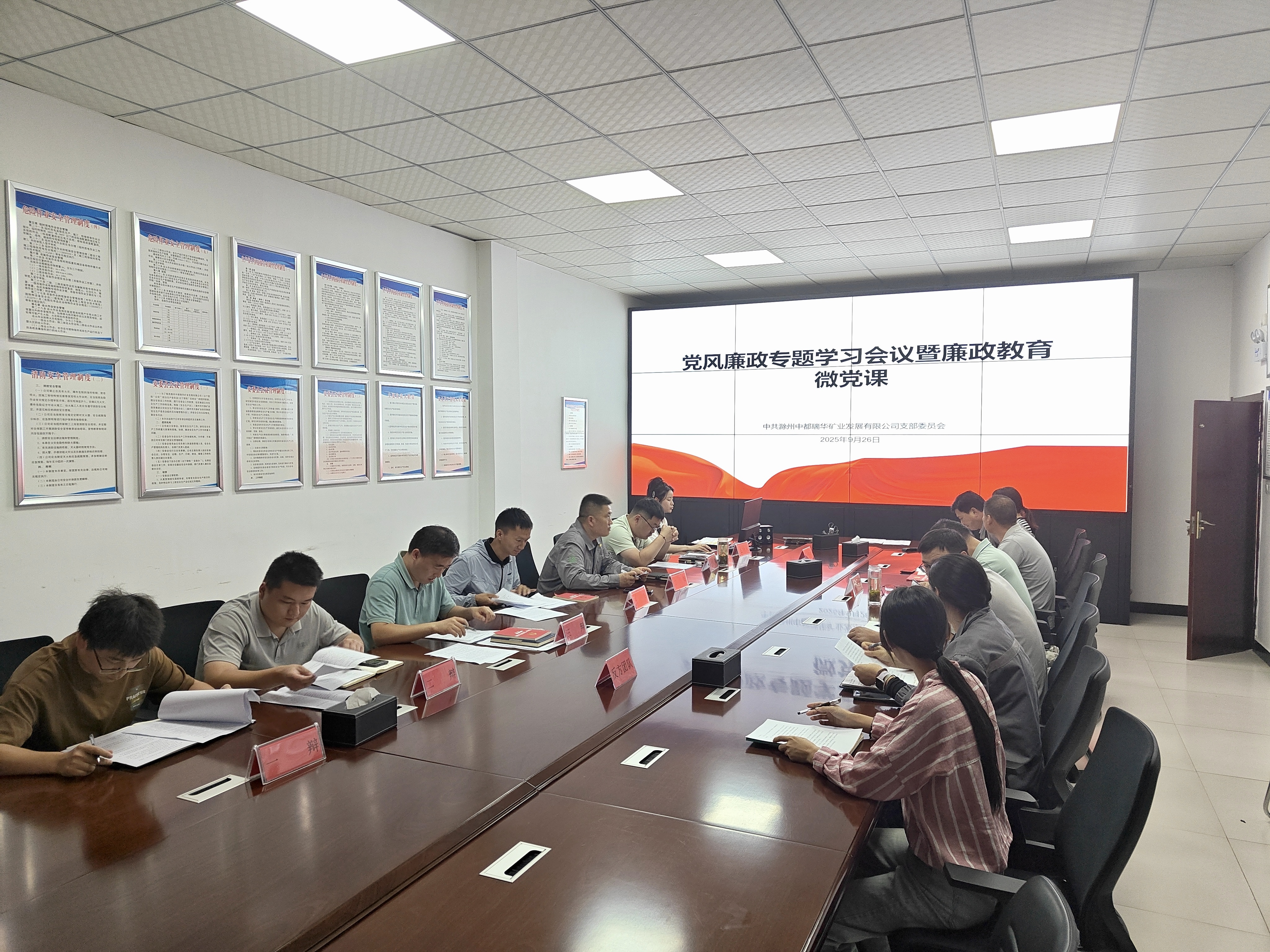 為持續(xù)深化黨風(fēng)廉政建設(shè),深入貫徹中央八項(xiàng)規(guī)定精神,在國(guó)慶、中秋雙節(jié)來(lái)臨之際,中都瑞華礦業(yè)黨支部于2025年9月26日組織召開黨風(fēng)廉政專題學(xué)習(xí)會(huì)議,并以“辯以明紀(jì),篤行致遠(yuǎn)”為主題開展廉政教育微黨課。