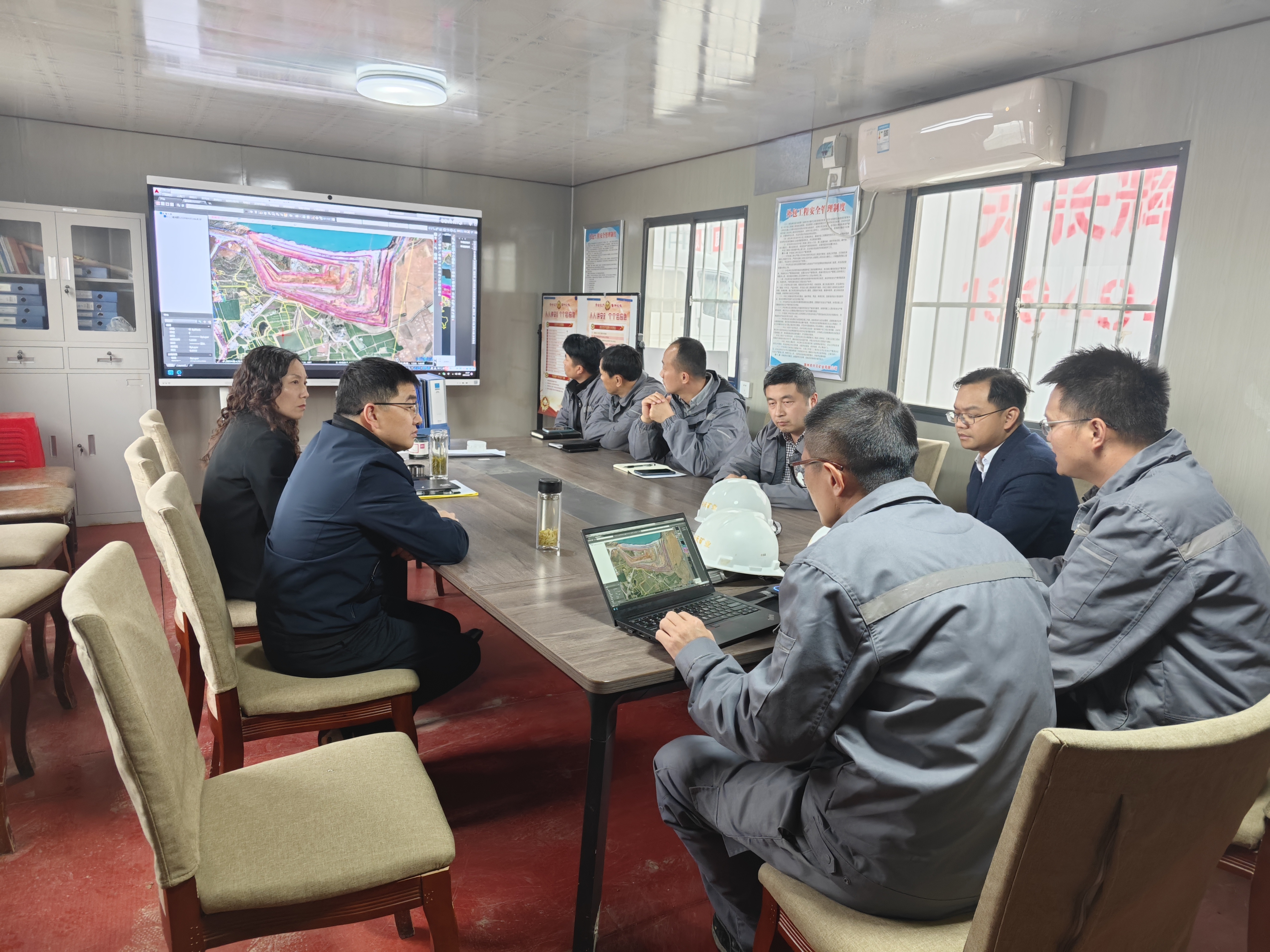 王峰一行來到諭興礦現(xiàn)場,詳細了解礦山基建情況和邊坡復(fù)綠進度,并召開現(xiàn)場座談會,協(xié)調(diào)解決生產(chǎn)過程中遇到的問題。王峰強調(diào),礦山安全生產(chǎn)工作責(zé)任重大,一要牢固樹立安全發(fā)展理念,充分認識到礦山安全的重要性和緊迫性,從嚴從實從細抓好礦山企業(yè)安全生產(chǎn)工作;二要切實扛起安全生產(chǎn)主體責(zé)任,嚴格落實安全生產(chǎn)各項規(guī)定和制度,規(guī)范操作流程;三要堅持“綠水青山就是金山銀山”的發(fā)展理念,高標準開展生態(tài)修復(fù),確保礦山復(fù)綠工作取得扎實成效。四要加強員工管理,及時關(guān)注員工思想動態(tài),為他們解決生活上的困難,并不斷加大安全培訓(xùn)、教育、管理、監(jiān)督力度。