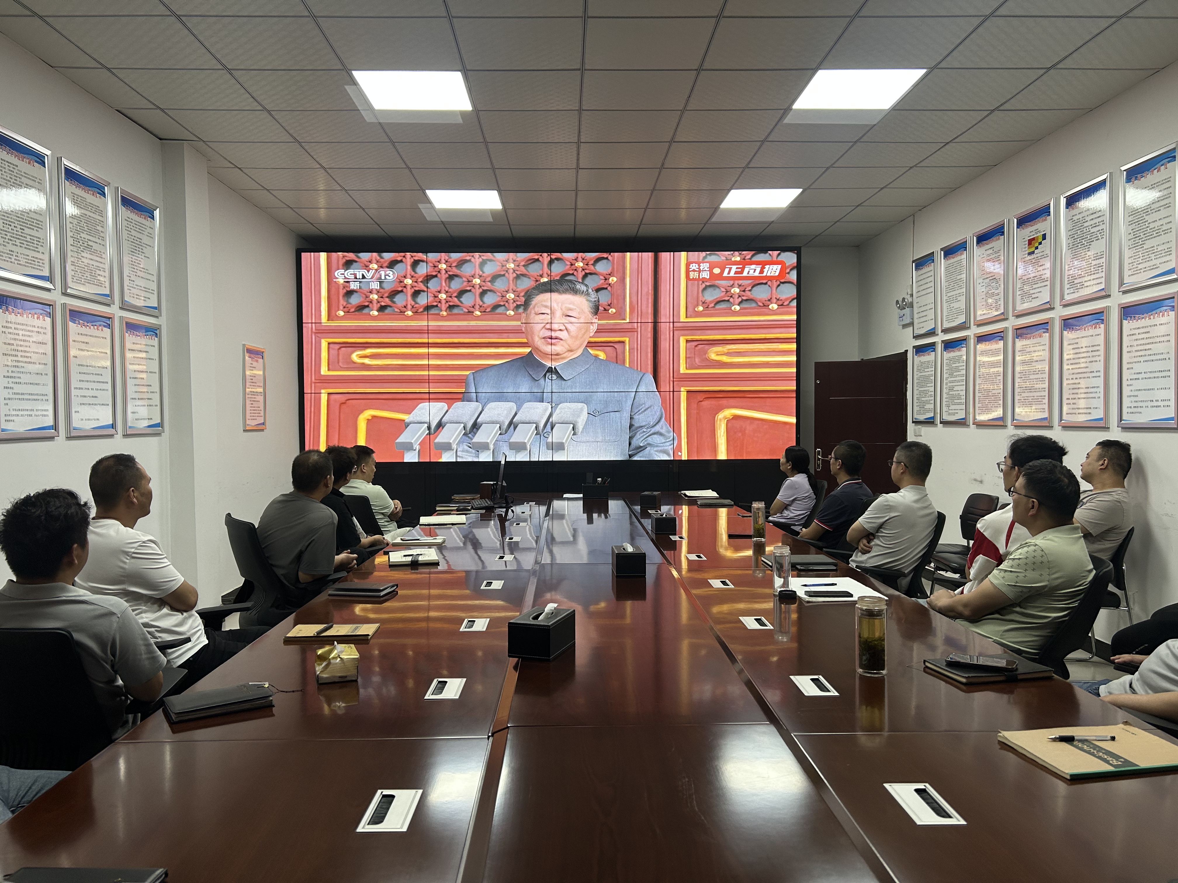 當天,各子公司結合礦山生產實際設置觀看點,確保一線礦工、技術人員及后勤保障人員都能準時觀看。上午9時整,紀念大會正式開始。直播畫面中,天安門廣場莊嚴壯麗,長安街盛裝以待,大家全神貫注觀看閱兵盛況,認真聆聽習近平總書記重要講話,共同感受大國崛起的磅礴力量。當看到受閱方隊邁著鏗鏘步伐通過天安門、先進裝備列陣亮相時,大家更是心潮澎湃,為祖國的強大和人民軍隊的威武雄壯而感到無比自豪。