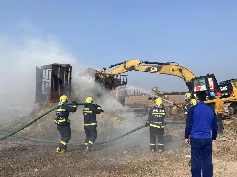 11月16日中午12時(shí)許,澗溪鎮(zhèn)姚郭村澗官路路口一輛滿載稻草的貨車(chē)不慎刮到路邊高壓電線引發(fā)稻草著火,情急之下,貨車(chē)司機(jī)將車(chē)輛開(kāi)往巢東礦區(qū)磅房尋求救援。興明礦業(yè)總經(jīng)理王秀超得知火情后,立即啟動(dòng)火災(zāi)應(yīng)急預(yù)案,安排磅房工作人員撥打119火警電話,并在短短的3分鐘內(nèi)抽調(diào)了巢東礦區(qū)10余名工作人員、2臺(tái)灑水車(chē)和1臺(tái)挖掘機(jī),第一時(shí)間趕往現(xiàn)場(chǎng)救援。興明礦業(yè)職工冒著滾滾濃煙,沖進(jìn)火場(chǎng)現(xiàn)場(chǎng),克服煙熏火燎等重重困難,奮力滅火,在消防官兵趕到前,有效阻止了火勢(shì)蔓延。隨后在與消防救援專(zhuān)業(yè)人員協(xié)同下,經(jīng)過(guò)1個(gè)多小時(shí)的不懈努力,終于把大火撲滅。