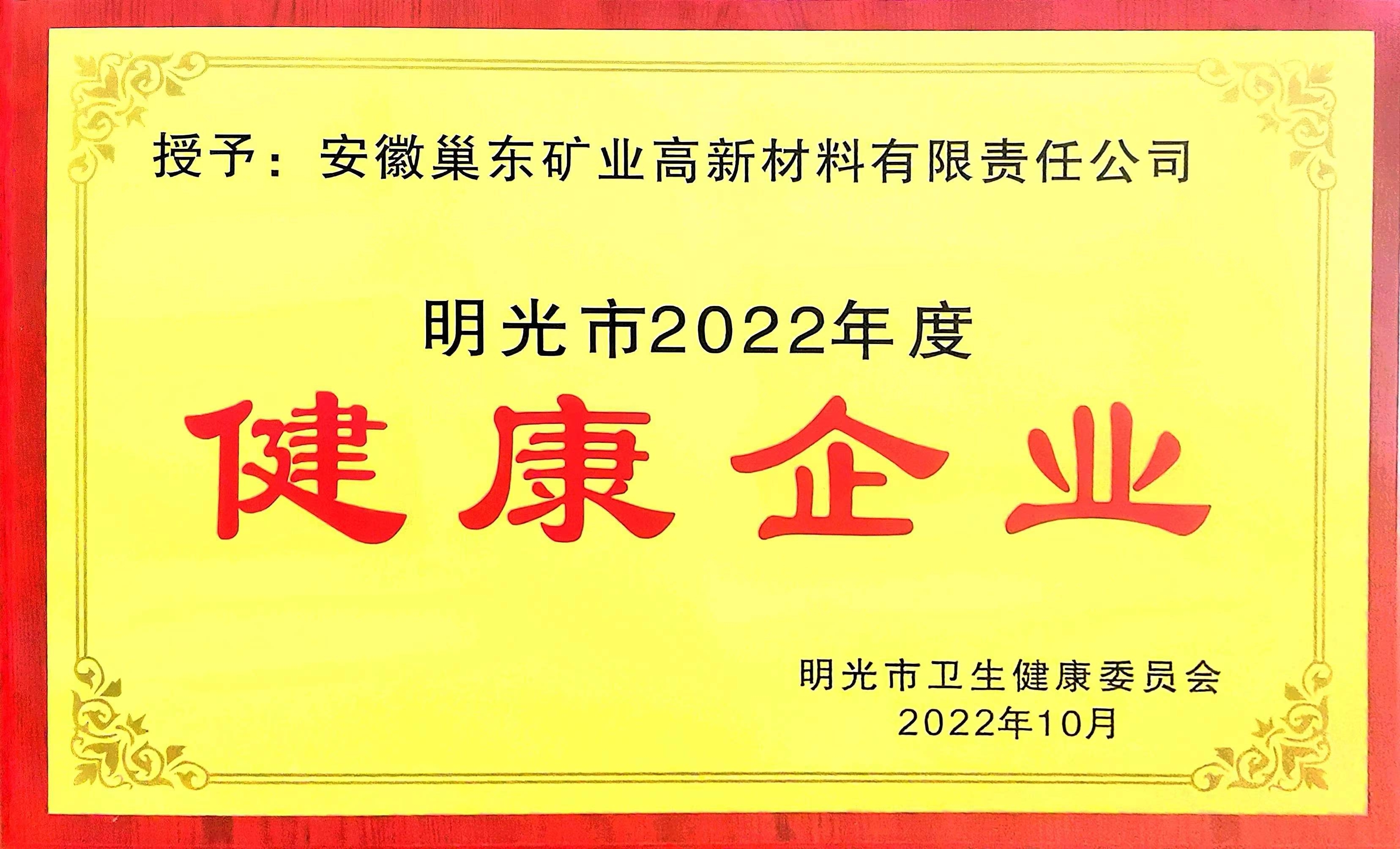 3月17日,2022年明光市健康企業(yè)表彰儀式在明光市舉行,滁州市興明礦業(yè)有限公司下屬全資子公司安徽巢東礦業(yè)高新材料有限責(zé)任公司榮獲“2022年度明光市健康企業(yè)”榮譽稱號。